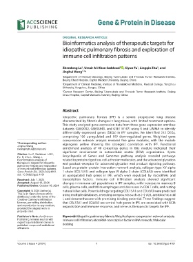 Publisher’s Note: AccScience Keywords: Idiopathic pulmonary fibrosis; Weighted gene coexpression network analysis;