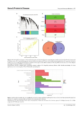 Figure 2. WGCNA and Venn diagram of DEGs and module genes. (A) WGCNA detected coexpressed gene modules associated with IPF traits, represented