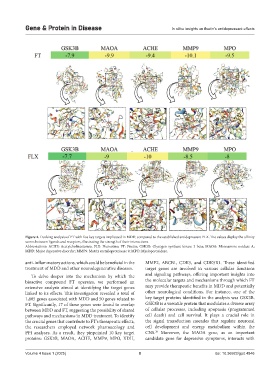 Figure 4. Docking analysis of FT with five key targets implicated in MDD, compared to the established antidepressant FLX. The values display the affinity