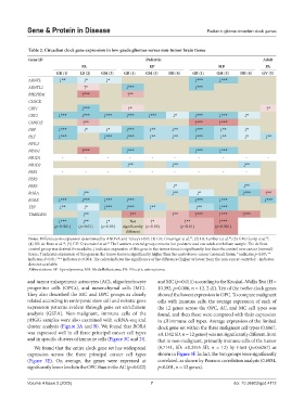Table 2. Circadian clock gene expression in low‑grade gliomas versus non‑tumor brain tissue