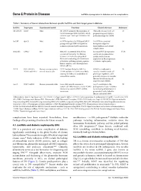 Table 1. Summary of known interactions between specific lncRNAs and their target genes in diabetes