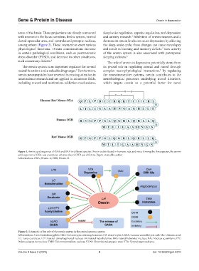 Figure 1. Amino acid sequence of OXA and OXB in different species. Orexin is distributed in humans, rats, and mice. Among the three species, the amino