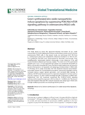 Copyright: © 2022 Author(s). Keywords: Osteosarcoma; Solanum xanthocarpum; Zinc oxide nanoparticles; Apoptosis;