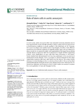 et al., 2023, Role of stem cells in Keywords: Stem cell; Abdominal aortic aneurysm; Thoracic aortic aneurysm