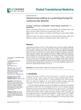 Citation: Yang L, Tao Z, Ma X, Keywords: Adenine base editor; Cardiovascular disease; Gene therapy