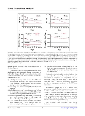 Figure 2. (A-D) Mass balance model (MBM)-based simulation of two hypothetical overweight (90 kg) individuals whose body composition and total