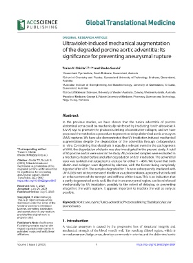 distributed under the terms of the Keywords: Aortic aneurysms; Tunica adventitia; Photocrosslinking; Elastolysis; Vascular