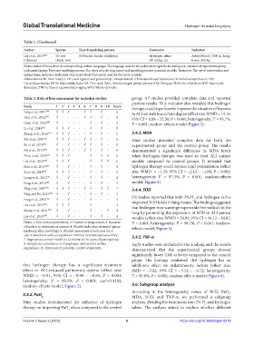 Fang et al., 2012 [26]  √  -  √  -  -  -  √  -  -  -  3  Six studies reported that both 2% H  and hydrogen saline