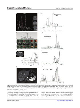(A-D) are NMR of the brain, heart, muscle, and liver, respectively, and (E-H) are the MRS results of the respective organs. Images are reproduced from a
