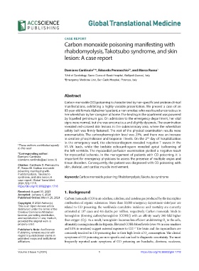 syndrome, and skin lesion: A Keywords: Carbon monoxide poisoning; Rhabdomyolysis; Takotsubo syndrome