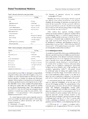 Table 2. Ranson criteria for acute pancreatitis (iii) Presence of pancreatic necrosis on computed