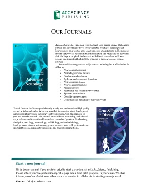 Write to us via email if you are interested to start a new journal with AccScience Publishing.