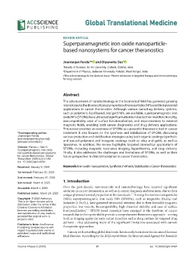 *Corresponding author: treatment. It also focuses on the synthesis and stabilization of SPIONs, discussing