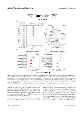 (B) Visualization of read coverage on mouse Agt in hepAGT +/+ and -/- mice fed WD for 14 days. (C) Volcano plot of all DEGs between hepAGT +/+