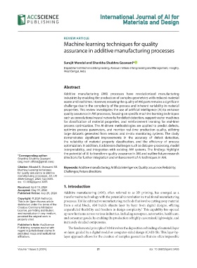 Citation: Mondal S, Goswami SS. Keywords: Additive manufacturing; Artificial intelligence; Quality assurance; Reliability;