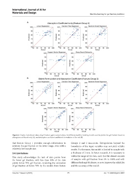 Figure 6. Graphs of predicted values of gel fraction against actual values, for different machine learning models used to predict the gel fraction based on