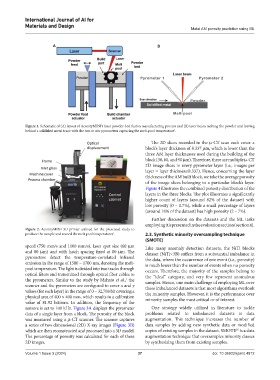 Figure 1. Schematic of (A) layout of AconityMINI’s laser powder-bed fusion manufacturing process and (B) laser beam melting the powder and leaving