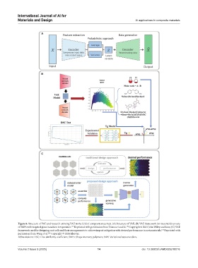 Figure 8. Structure of VAE and research utilizing VAE in the field of composite materials. (A) Structure of VAE; (B) VAE framework for material discovery