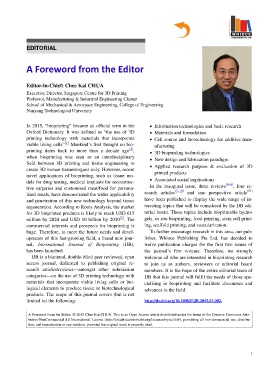 A Foreword from the Editor. © 2015 Chee Kai CHUA. This is an Open Access article distributed under the terms of the Creative Commons Attri-