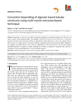 Citation: Tan E Y S and Yeong W Y, 2015, Concentric bioprinting of alginate-based tubular constructs using multi-nozzle extru-
