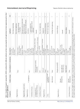 Table 1. Examples of magnetic nanoparticles (MNPs) synthesized by different methods and their main properties and applications in tissue engineering and/or other