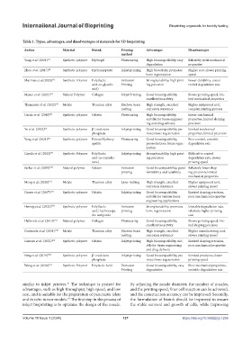 Table 1. Types, advantages, and disadvantages of materials for 3D bioprinting