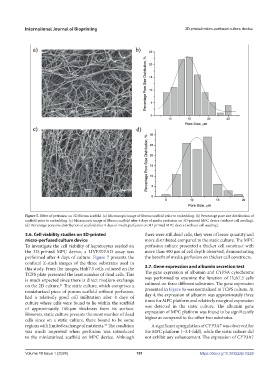 (d) Percentage pore size distribution of scaffold after 4 days of media perfusion on 3D-printed MPC device (without cell seeding).