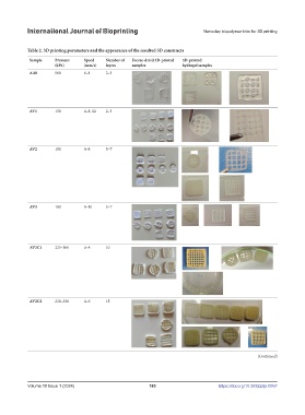 Table 2. 3D printing parameters and the appearance of the resulted 3D constructs