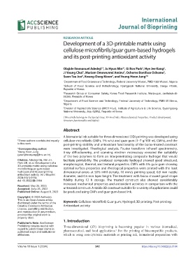Citation: Adedeji OE, Min JH, facilitate printability. The produced composite hydrogel showed good structural,
