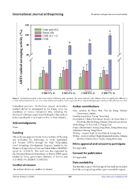 p < 0.05. Abbreviations: ABTS, “2,2’-azino-bis(3-ethylbenzothiazoline-6-sulfonate); CGB, Borax-treated CMFs/guar gum construct; CMF, cellulose microfibril.