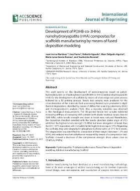distributed under the terms of the Keywords: Hydroxyapatite; Polyhydroxyalkanoates; Fused filament deposition