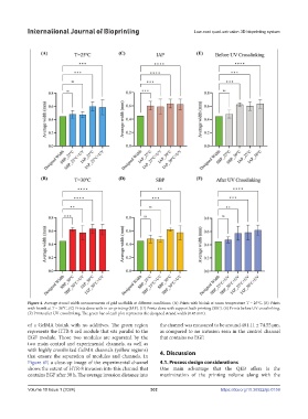 of a GelMA bioink with no additives. The green region the channel was measured to be around 481.11 ± 74.55 µm,