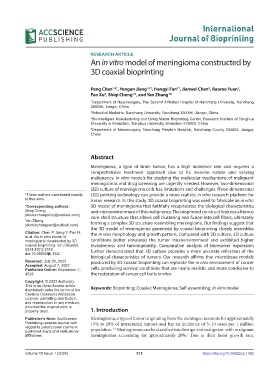 This is an Open Access article Keywords: Bioprinting; Coaxial; Meningioma; Self-assembling; In vitro model