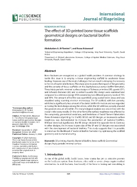 Accepted: October 26, 2023 to minimize the likelihood of bacterial biofilm formation by optimizing the scaffold