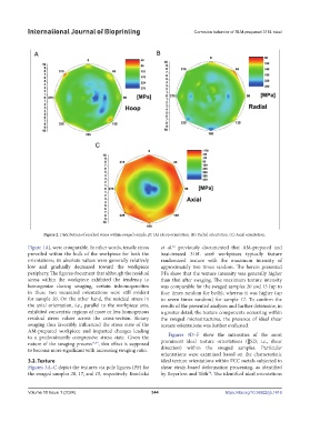 Figure 2. Distribution of residual stress within swaged sample 20. (A) Hoop orientation. (B) Radial orientation. (C) Axial orientation.