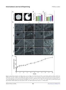 loading. (B) The elastic modulus of the scaffold with different components. (C) The compression strength of the scaffold with different components.