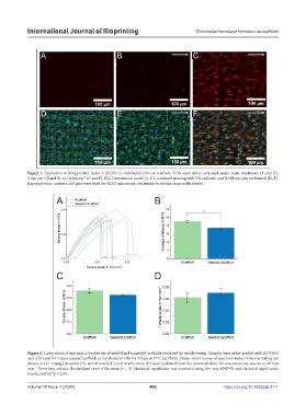 Figure 7. Expression of Krüppel-like factor 2 (KLF2) of endothelial cells on scaffolds. Cells were either cultivated under static conditions (A and D),