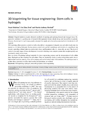 Citation: Mehrban N, Teoh G Z and Birchall M A, 2016, 3D bioprinting for tissue engineering: Stem cells in hydrogels. Interna-
