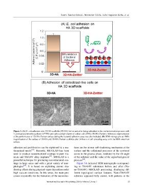 Figure 2. (A) E. coli adhesion onto 3D HA scaffolds (3D-HA) before and after being submitted to the zwitterionization process with