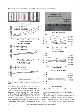 PGC hydrogels that the printed filament widths in- Figure 5. Effect of feed rates on printed filament widths.
