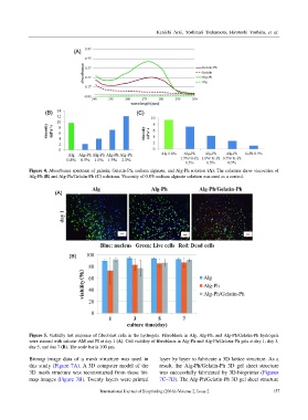 were stained with calcein-AM and PI at day 1 (A). Cell viability of fibroblasts in Alg-Ph and Alg-Ph/Gelatin-Ph gels at day 1, day 3,