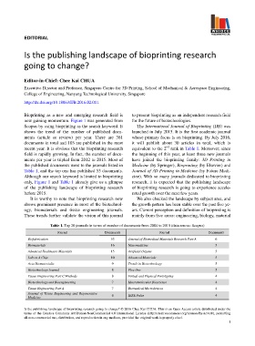 Is the publishing landscape of bioprinting research going to change? © 2016 Chee Kai CHUA. This is an Open Access article distributed under the
