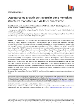 Citation: Malayeri A, Sherborne C, Paterson T, et al., 2016, Osteosarcoma growth on trabecular bone mimicking structures manu-