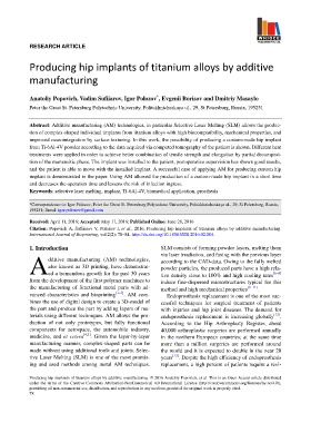 tion of complex-shaped individual implants from titanium alloys with high biocompatibility, mechanical properties, and