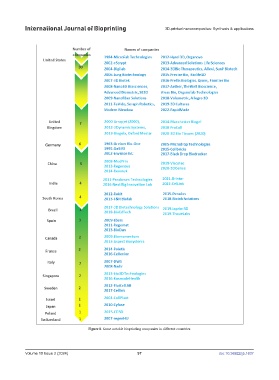 International Journal of Bioprinting 3D-printed nanocomposites: Synthesis & applications Figure 8. Some notable bioprinting companies in different countries. Volume 10 Issue 2 (2024) 97 doi: 10.36922/ijb.1637