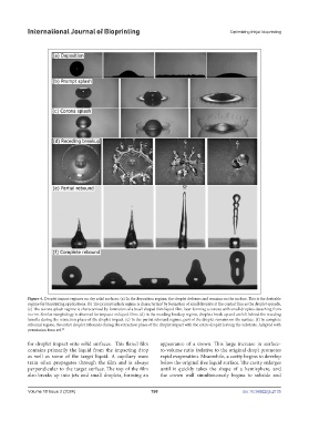 its rim. Similar morphology is observed for impacts on liquid films. (d) In the receding breakup regime, droplets break up and are left behind the receding