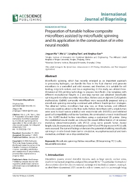 Copyright: © 2024 Author(s). Keywords: Microfluidic spinning; Hollow microfiber; 3D bioprinting; PC12 cells;