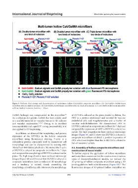 microfiber with one kind of inclusion. (B) CaA/GelMA double-lumen microfiber with two kinds of inclusions. (C) CaA/GelMA triple-lumen microfiber