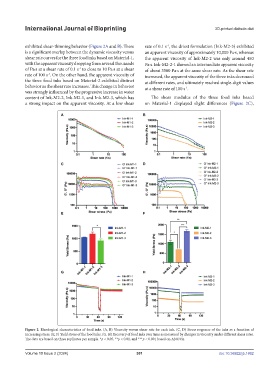 exhibited shear-thinning behavior (Figure 2A and B). There rate of 0.1 s , the driest formulation (Ink-M2-3) exhibited