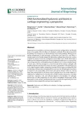 Copyright: © 2024 Author(s). Keywords: Hyaluronic acid; DNA functionalization; Cartilage regeneration;
